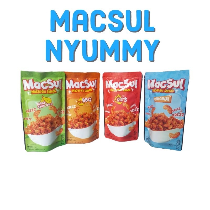 macsul macaroni sultan NYUMMY dengan berbagai macam varian rasa yang bikin nagih, pembelian dalam jumlah lebih dari 20 hrg 7000
