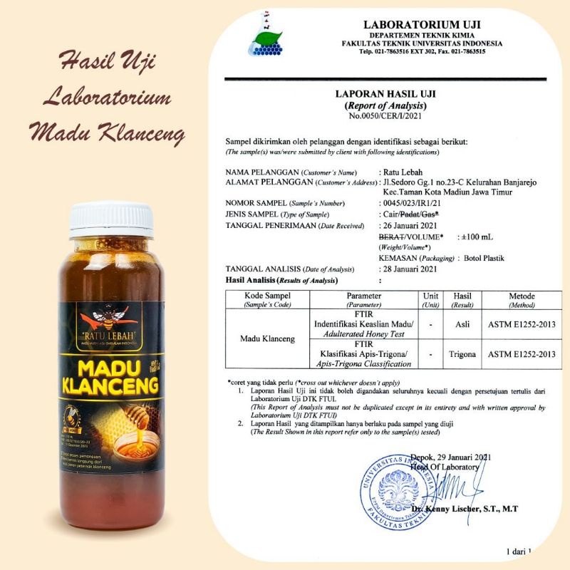 MADU KLANCENG ASLI RATU LEBAH/MADU STROKE/MADU RATU LEBAH