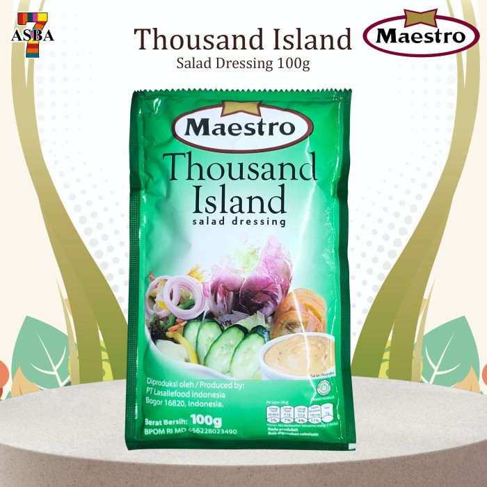 Maestro Thousand Island adalah Merk mayoniase yang cocok untuk salad sayur. mayonnaise hasil olahan telur, cuka dan minyak yang memiliki kandungan protein tinggi. Rasanya yang nikmat sangat cocok digunakan untuk dressing atau cocolan. Produk ini merupakan produk halal yang sudah bersertifikat MUI. Rasanya sedikit asam dan menyegarkan