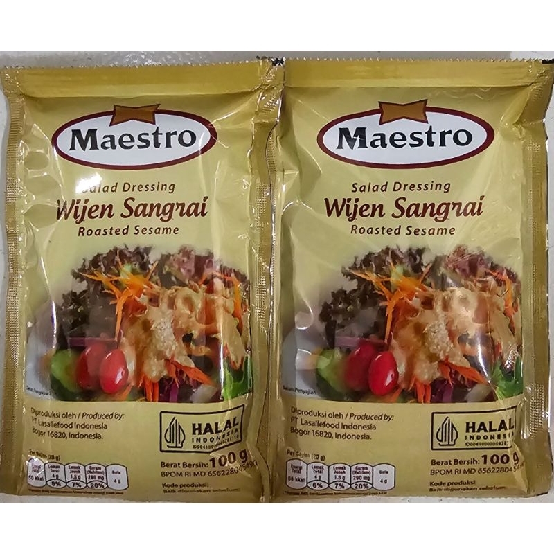 Maestro Salad Dressing Wijen Sangrai dibuat dari bahan berkualitas yang menghasilkan saus salad dengan cita rasa yang lezat. Maestro Salad Dressing Wijen Sangrai membuat salad yang disajikan semakin nikmat. Maestro Salad Dressing Wijen Sangrai dapat diaplikasikan pada salad sayuran.