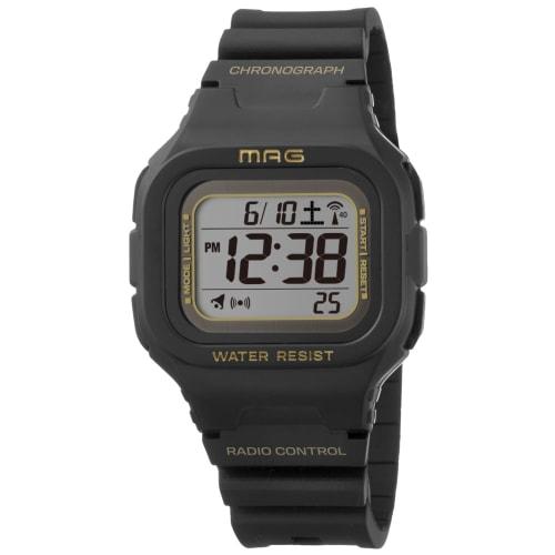 MAG MW-550 BK2 Цифровые часы с радиоконтролем, на солнечной батарее, двойное питание, водонепроницаемость до 10 АТМ, уретановый ремешок, немного меньший размер, черные, для