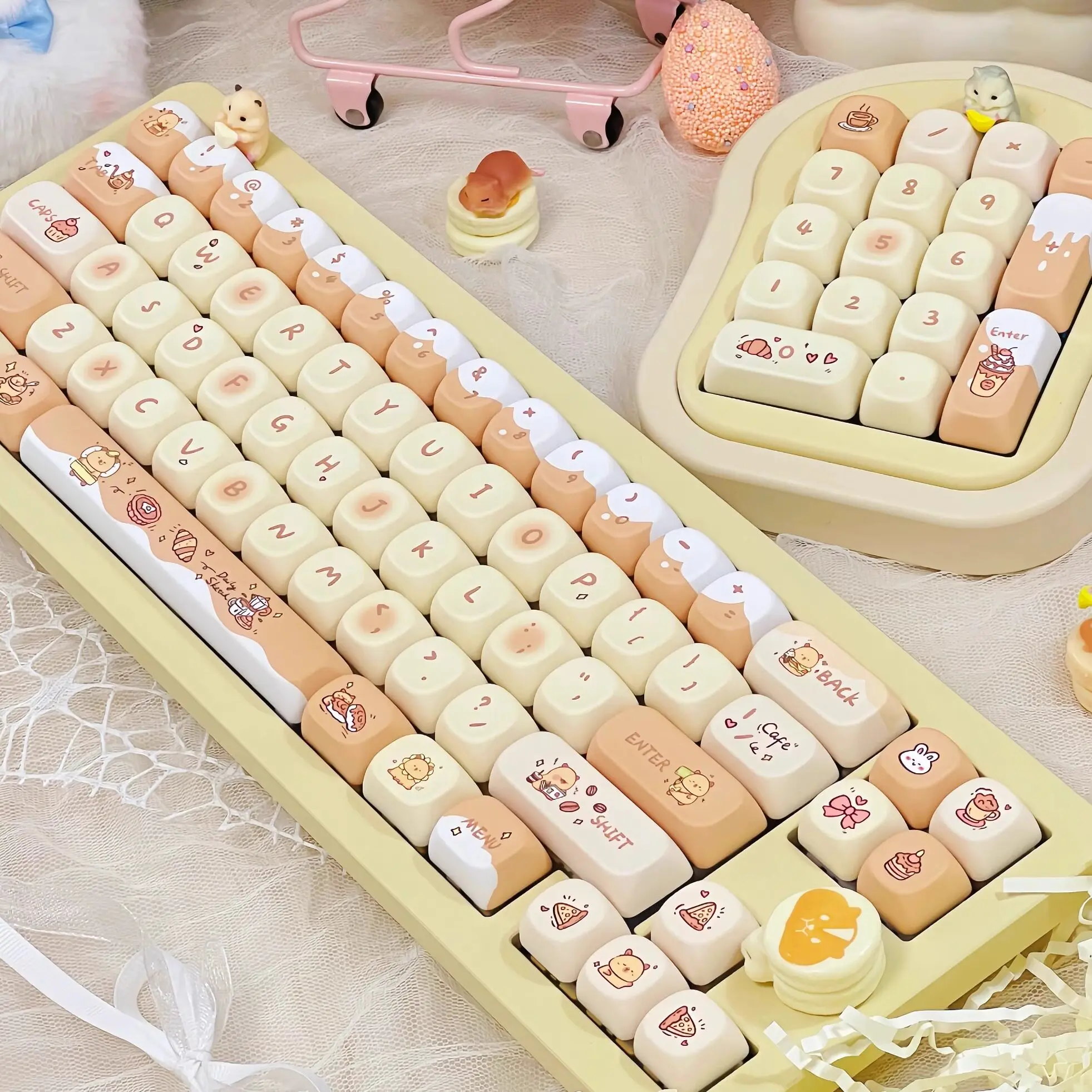 MAIMOOO Capybara Keycaps MOA Profile Round Cartoon Cute Keycap Cherry PBT Dye Sub Custom Yellow Key Caps for Mechanical Keyboard