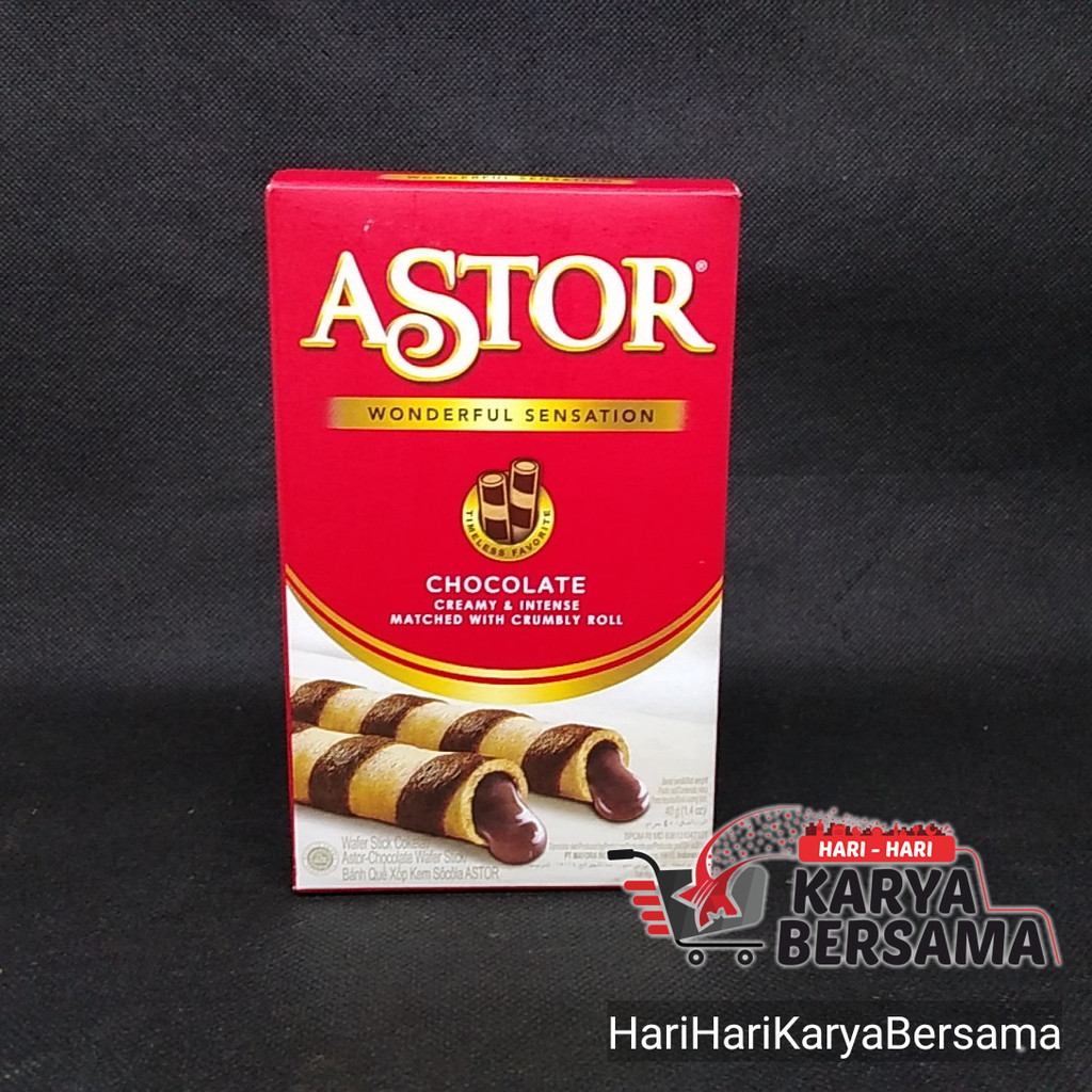 MAKANAN RINGAN ASTOR WAFER ROLL CHOCOLATE 40GR