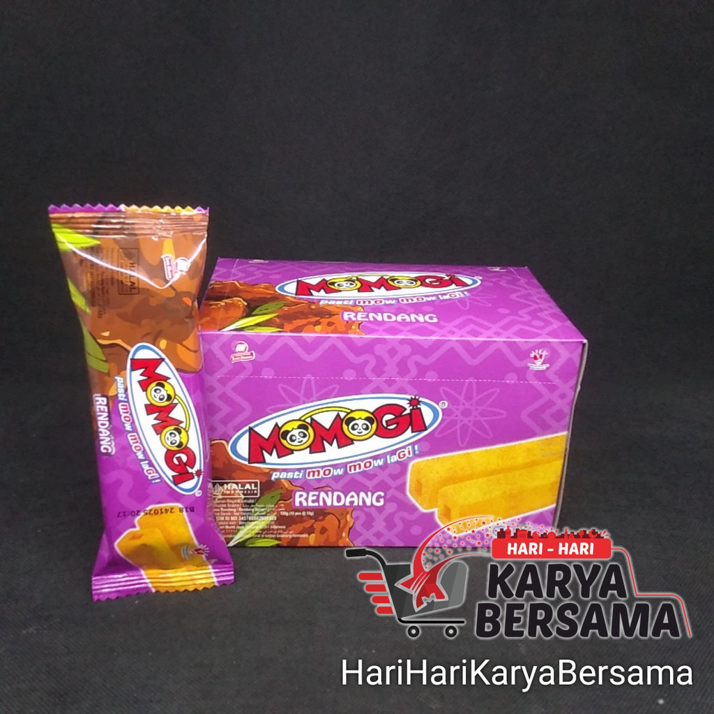 Makanan ringan snack momogi rasa rendang merupakan snack stick rasa rendang, Dengan stick jagung dibalut taburan ontentik rendang dengan perpaduan rempah asin dan gurih yang enak banget .