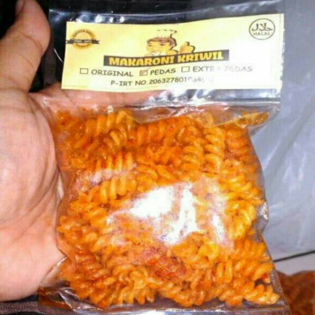 Makaroni kriwil yang gurih dan pedas, terdiri dari 3 varian rasa: