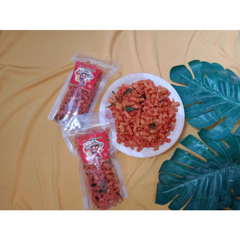 makroni yg digoreng dan memiliki rasa pedas dengan campuran daun jeruk segar