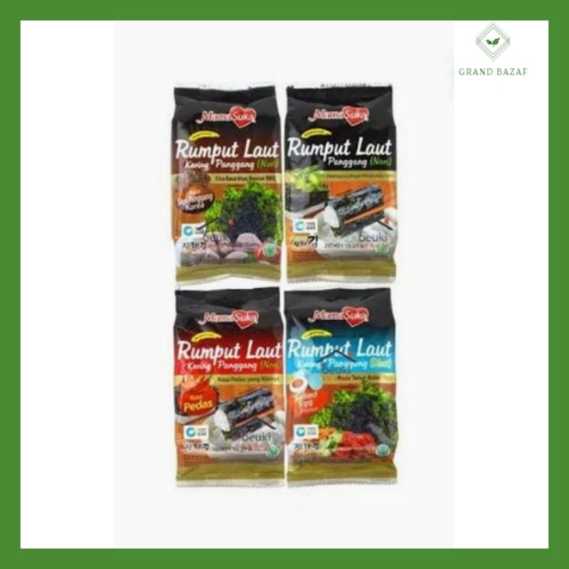 Rumput Laut Kering Panggang MamaSuka merupakan bahan makanan, berupa lembaran rumput laut yang dipanggang 2 kali dengan minyak zaitun, minyak jagung, dan minyak wijen kemudian ditaburi garam halus. Makanan ini kaya serat, vitamin dan mineral serta rendah kolesterol, karena rumput laut punya manfaat baik untuk kesehatan. Salah satunya meningkatkan kesehatan jantung berkat kandungan asam lemak omega-3 dan antioksidan untuk meningkatkan kesehatan jantung.