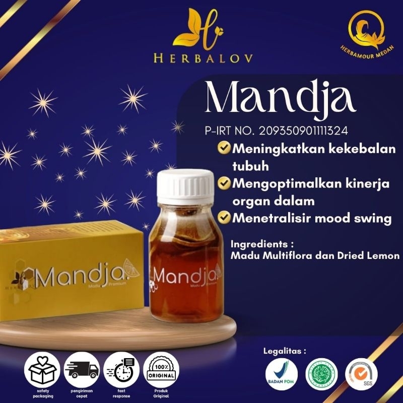 Mandja perpaduan madu multiflora premium dengan dried lemon bermanfaat untuk meningkatkan kekebalan tubuh, mengoptimalkan kerja organ dalam, serta dapat menetralisir mood swing sehingga suasana hati lebih nyaman.