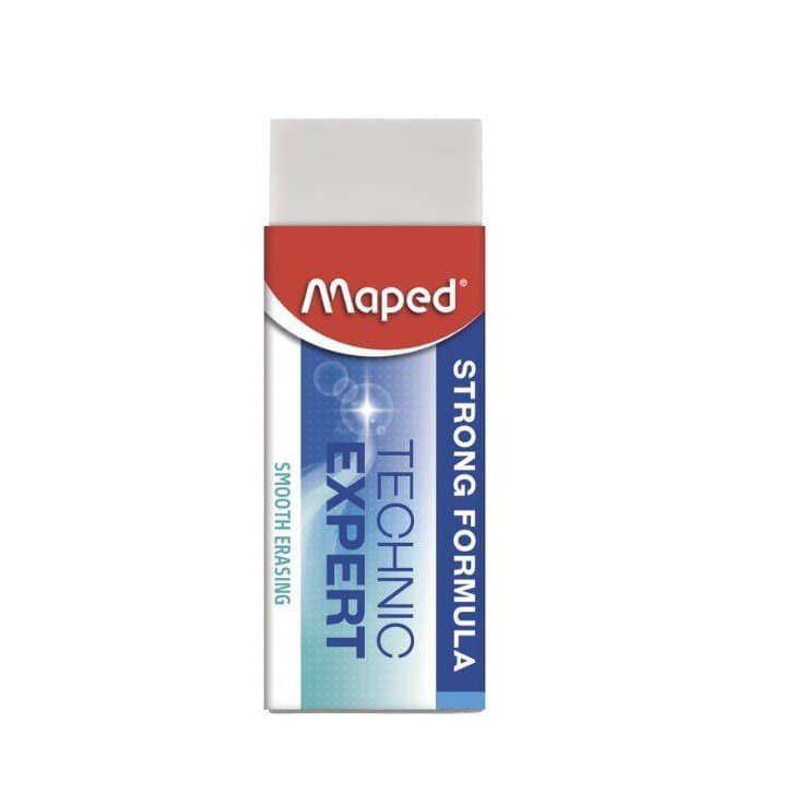 MAPED TECHNIC EXPERT ERASER STANDAR Penghapus yang memiliki daya hapus yang kuat bahkan bisa menghapus pensil warna. Memiliki tekstur yang empuk sehingga sangat nyaman diaplikasikan