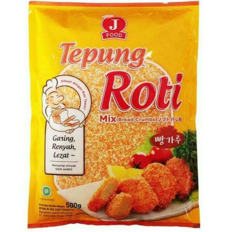Tepung roti JFood memiliki karakteristik ringan dan renyah. Terbuat dari roti tawar panggang dengan bahan baku pilihan berkualitas dan dikeringkan sehingga dapat dijadikan coating bagi makanan ringan.