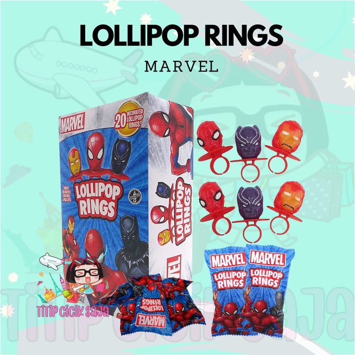 MARVEL LOLLIPOP RINGCANDY PERMEN CINCIN IRONMAN SPIDERMAN BLACKPANTHER