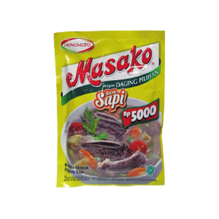 Masako dengan daging sapi pilihan kaldu lezat . Bumbu extrak daging ayam ,perpaduan tepat antara daging berkualitas dan bumbu ,rempah pilihan yang memberikan rasa dan aroma seperti kaldu buatan di rumah.