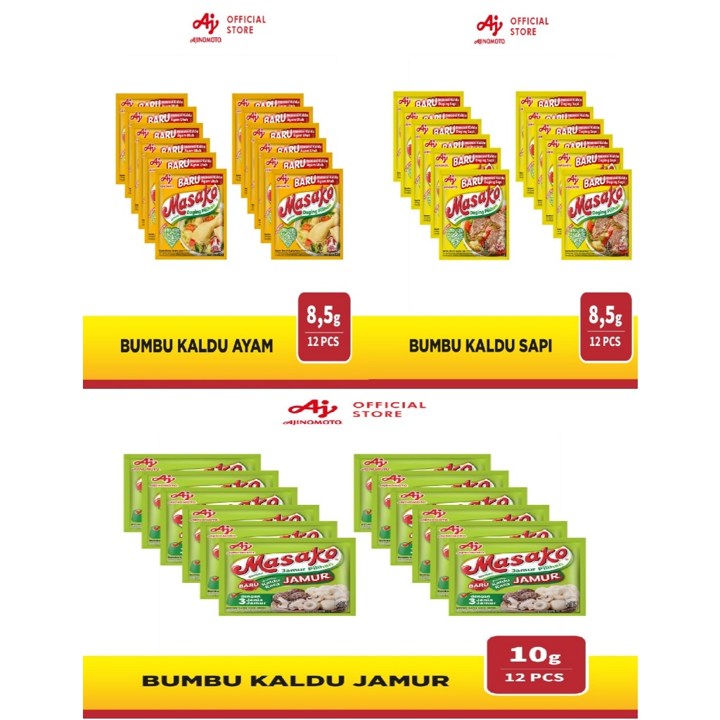 MASAKO AYAM 8.5 GRAM / MASAKO SAPI 8.5 GRAM / MASAKO JAMUR 10GR , BUMBU KALDU BUMBU MASAK ISI 1 RENCENG 12 SACHET PENYEDAP RASA