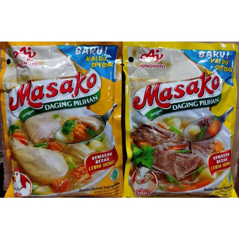 Masako Ayam / Sapi 250 Gram merupakan penyedap masakan rasa daging ayam/ sapi yang dibuat dengan perpaduan tepat antara daging segar berkualitas, bumbu, dan rempah pilihan. Memberikan rasa dan aroma masakan dari daging ayam asli sama seperti kaldu buatan sendiri.