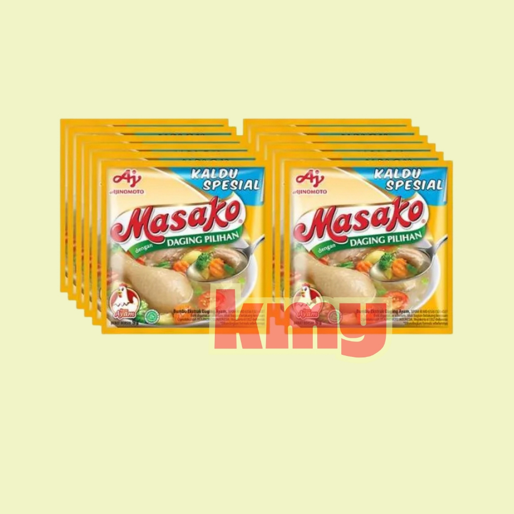 MASAKO tersedia dalam berbagai varian rasa, seperti ayam, sapi, dan rasa lain yang sering digunakan dalam masakan sehari-hari.