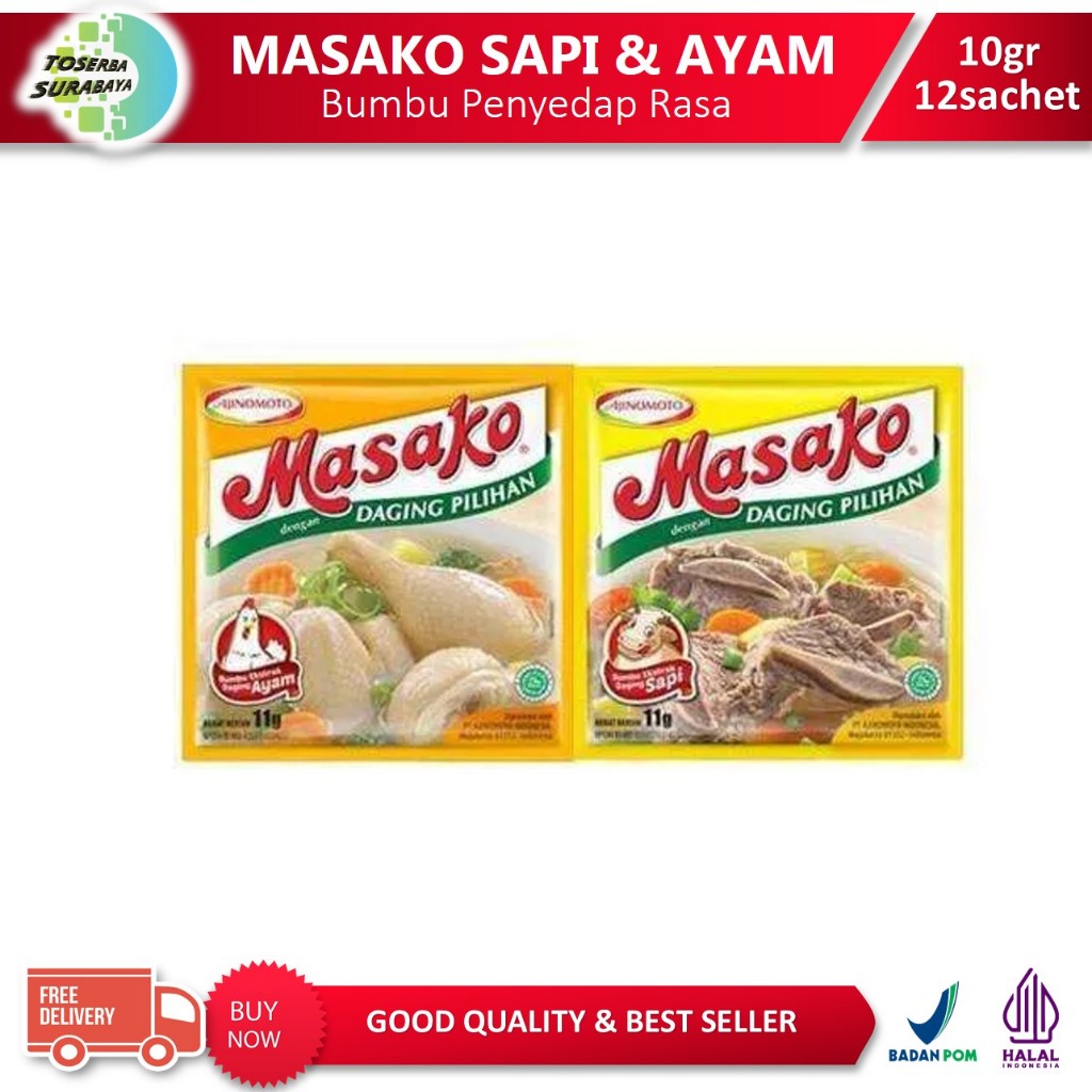 MASAKO Ayam & Masako Sapi Sachet (Per Renceng 12 sachet x 10gr)