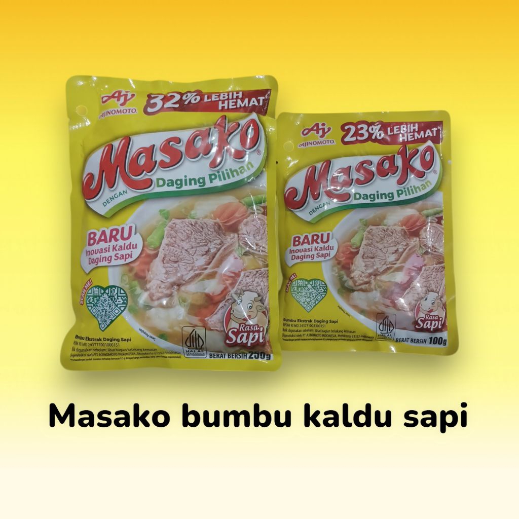 Masako menggunakan daging sapi pilihan yang berkualitas, serta bumbu dan rempah-rempah yang diracik khusus untuk menghasilkan rasa kaldu yang autentik.