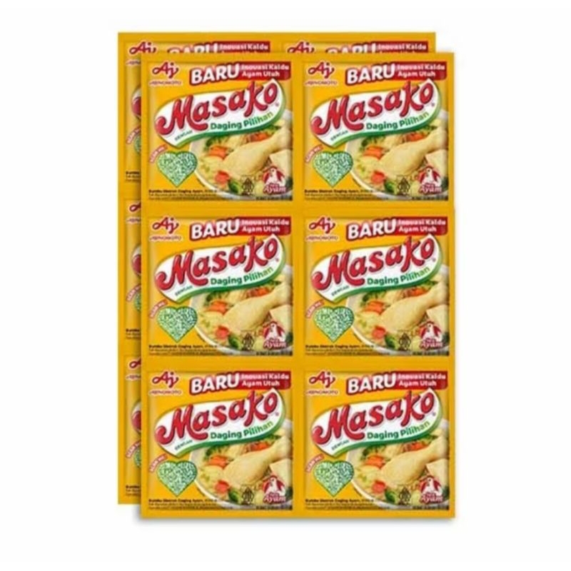 Masako bumbu ekstrak daging ayam, dibuat dengan daging ayam yang berkualitas serta kombinasi bumbu rempah pilihan sehingga menghasilkan rasa kaldu yang lezat