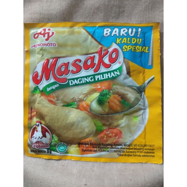 Masako Rasa Ayam 9g adalah bumbu kaldu spesial yang dibuat dengan daging ayam asli pilihan, dengan ekstrak daging lebih mantap dan rasa asin, gurih, dan bumbu yang lebih seimbang. Diolah dengan teknologi tinggi dan higienis hingga menghasilkan bumbu kaldu yang berkualitas.