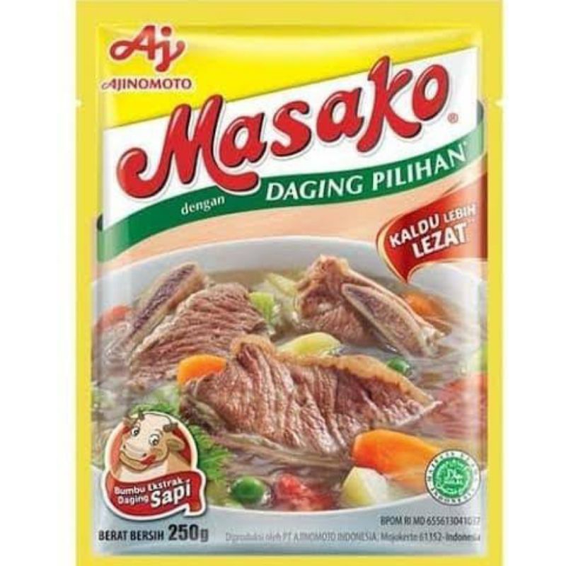 Masako adalah Bumbu Kaldu Penyedap dibuat dengan perpaduan sempurna antara daging segar berkualitas, bumbu dan rempah pilihan. Sehingga secara praktis menyempurnakan kelezatan masakan Anda sehari-hari dengan rasa dan aroma dari daging asli sama seperti kaldu buatan di rumah.