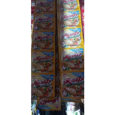 Masako Bumbu Penyedap Rasa Kaldu Ayam & Sapi merupakan bumbu ekstrak daging ayam & sapi yang dibuat dengan perpaduan tepat antara daging segar berkualitas, bumbu, dan rempah pilihan. Dapat memberikan rasa dan aroma masakan dari daging asli sama seperti kaldu buatan sendiri.