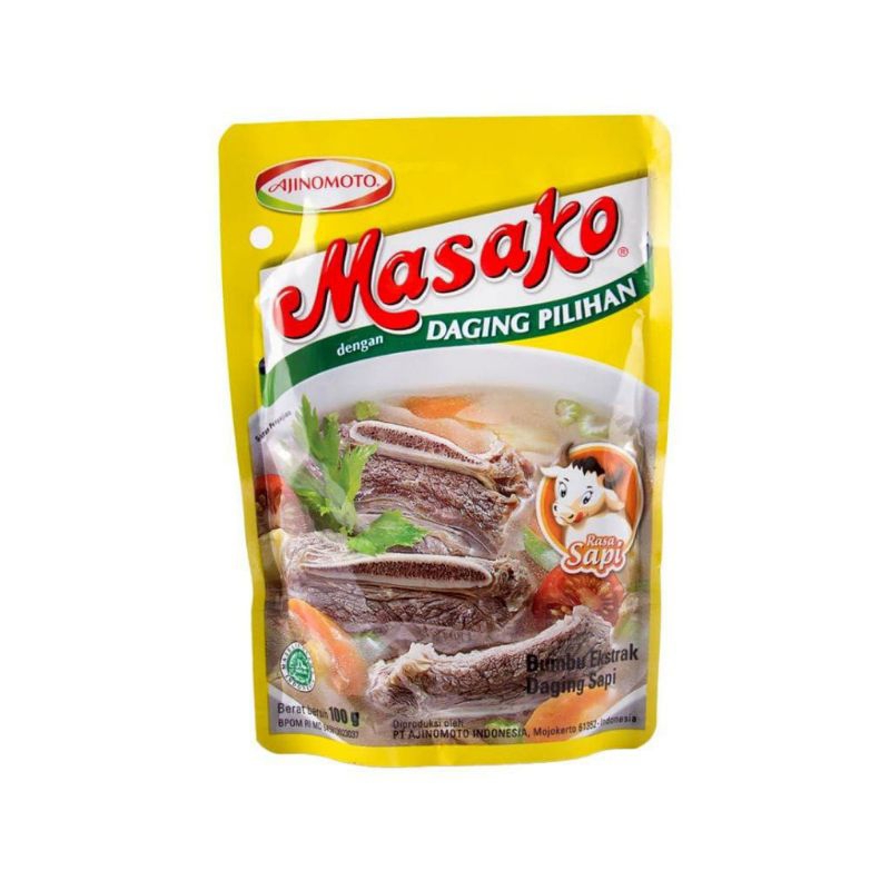 masako rasa sapi adalah bumbu kaldu spesial yang di buat dengan daging sapi asli pilihan, dengan eksrak daging lebih mantap dan rasa asin, gurih, dan bumbu yang lebih seimbang. di olah dengan teknologi tinggi dan higenis hingga menghasilkan bumbu kaldu yang berkualitas untuk kaldu buatan di rumah.