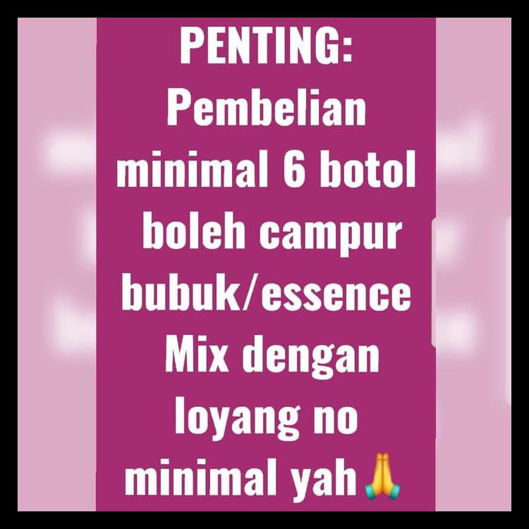 NB : UNTUK PEMBELIAN MINIMAL 6PC KECUALI DENGAN LOYANG, 6PC BOLEH DICAMPUR DENGAN VARIAN BUBUK / ESSENCE LAINNYA.