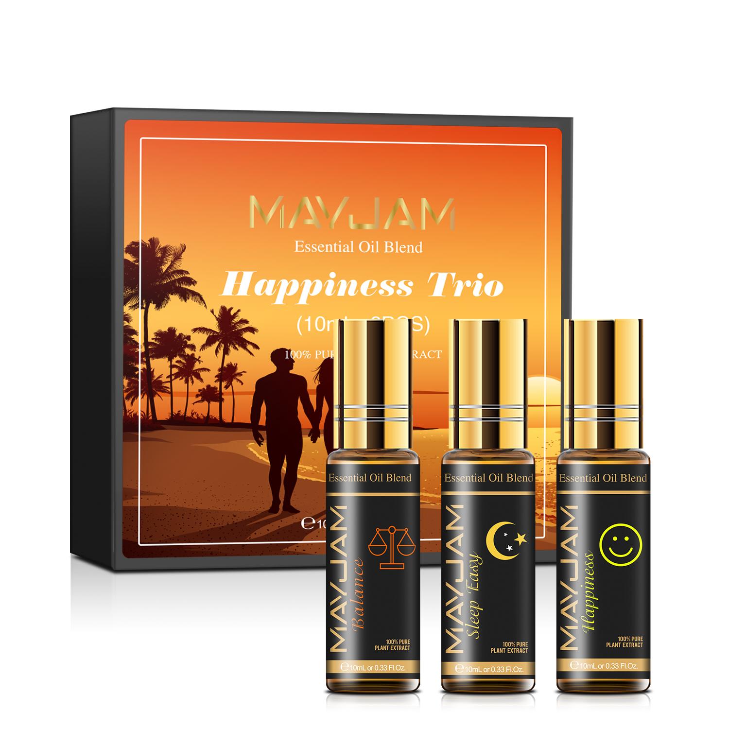MAYJAM 3 шт. шариковый набор эфирных масел, натуральные эфирные масла для ароматерапии, диффузор, увлажнитель, массаж, уход за кожей, подарок на день Святого Валентина Happiness Trio