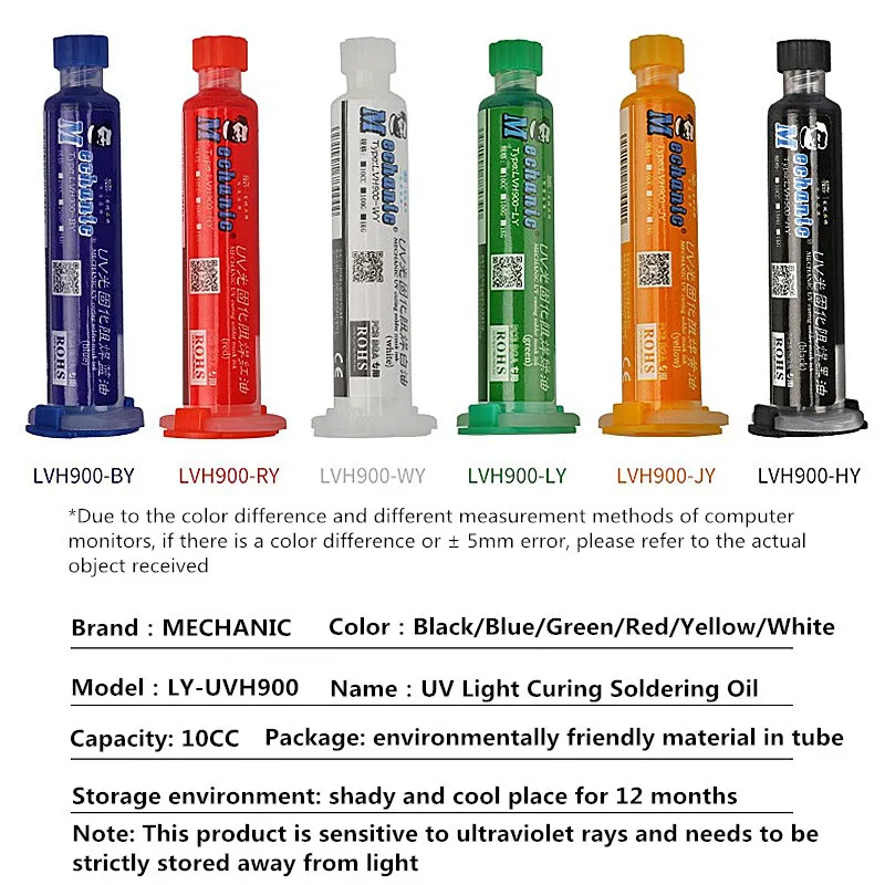 MECHANIC 10CC УФ флюс для телефона желтая/синяя/красная/зеленая/черная/белая печатная плата BGA краска предотвращает КОРРОЗИОННЫЙ сварочный флюс масло