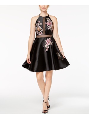 XSCAPE Женское черное вечернее платье выше колена без рукавов с бретелью через шею, Черный