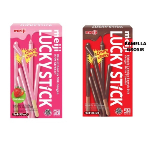 Stik biskuit renyah yang dilapisi dengan krim stroberi tebal yang lezat. Jadikan Meiji Lucky Stick sebagai camilan di tengah rasa bosan. Sangat cocok dikonsumsi bersama kopi, teh, dan minuman favorit Anda lainnya.