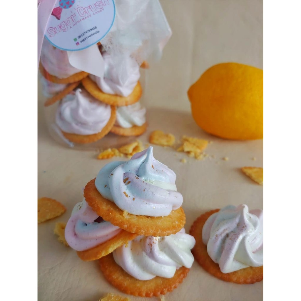 Meringue ini rasanya crispi banget nggak terlalu manis dan ringan banget. Sangat cocok untuk teman minum kopi atau teh kamu. Dijadikan cemilan aja juga bisa banget. Selain itu, meringue juga sering dijadikan hiasan cake ataupun cupcake.