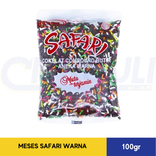 Meses Safari 100 gr adalah cokelat warna-warni berbentuk butiran yang dapat digunakan sebagai topping roti, donat, dan kue. Meses ini termasuk dalam kategori cooking chocolate atau chocolate compound.