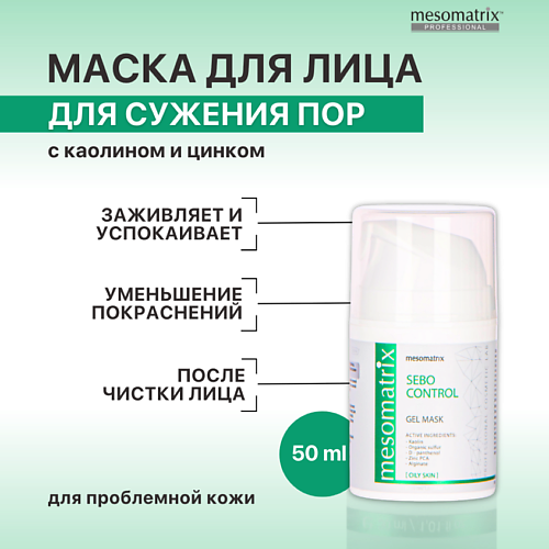 MESOMATRIX Гель-маска для сужения пор после чистки лица, успокаивающая, от черных точек SEBO CONTROL 50 Маски для лица