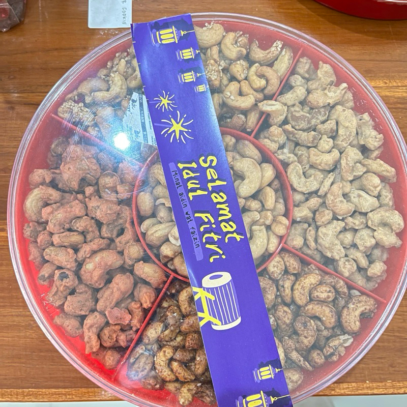Kacang mete 5 rasa adalah camilan kacang mete yang dikemas dengan 5 varian rasa berbeda dalam satu toples atau wadah.
