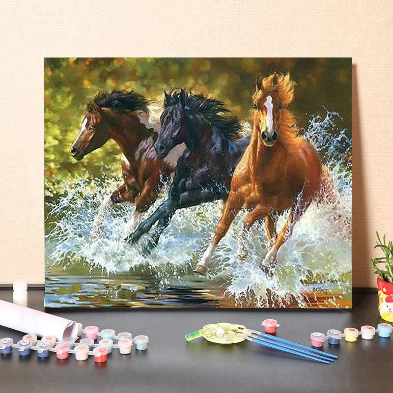 MF062 Цифровая картина маслом Акварель Ручная роспись Пейзаж Река Бегущая лошадь Картина Цифровой комплект Украшение гостиной Картина Рождественский подарок