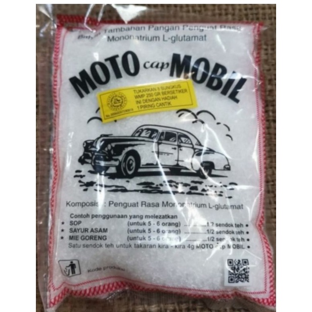Moto Cap Mobil Penyedap Rasa 250 Gram adalah salah satu penyedap rasa produksi PT. RENA DJAJA, Semarang. Cocok untuk aneka masakan sebagai tambahan MSG agar lebih gurih.