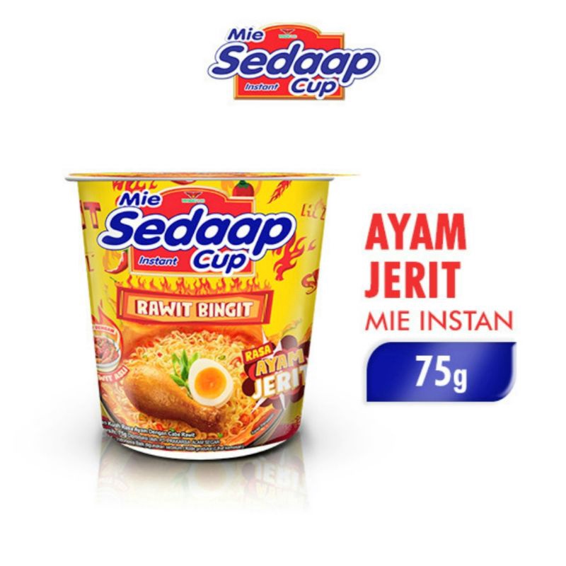 Mie Sedaap Cup Rawit Bingit rasa Ayam Jerit. Pertama di Indonesia sensasi makan mi instan dalam cup dengan cabai rawit asli, dipadu dengan keunggulan mie yang kenyal dan tidak mudah ngembang, juga kuah ayam pedas yang bikin auto jerit!. Praktis, bisa kamu makan dimana saja dan kapan saja. Juara Sedaapnya, Juara rawitnya!