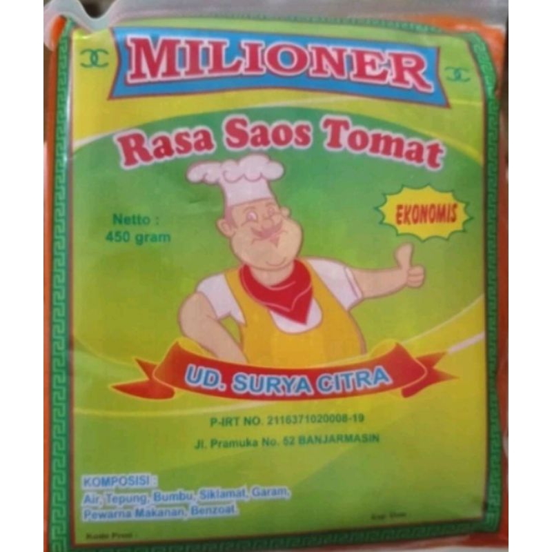 saus milioner rasa tomat berat 450g. Biasanya buat saus pentol/bakso di abang-abang. Cocok untuk cocolan lainnya, bisa di masak dulu biar tambah nikmat rasanya. Khas banjarmasin