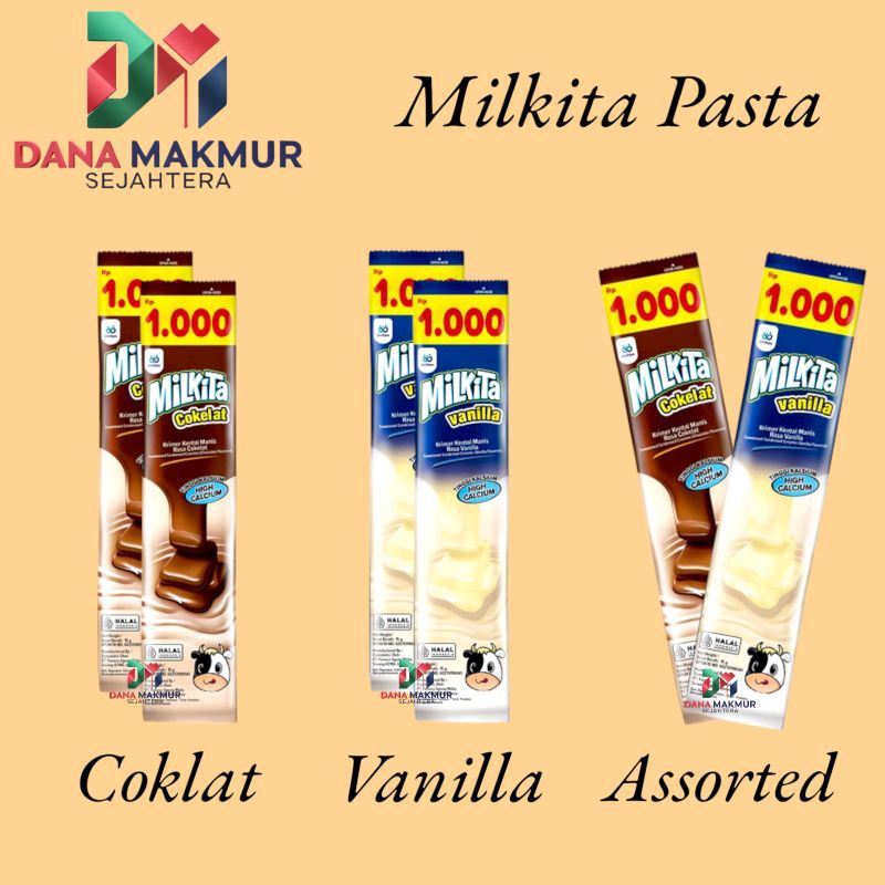 Milkita Pasta adalah cemilan sehat berbentuk pasta yang terbuat dari susu dan tinggi kalsium. Milkita Pasta dapat dikonsumsi langsung atau digunakan sebagai topping untuk makanan seperti roti, bubur kacang, makanan penutup, dan olahan es.