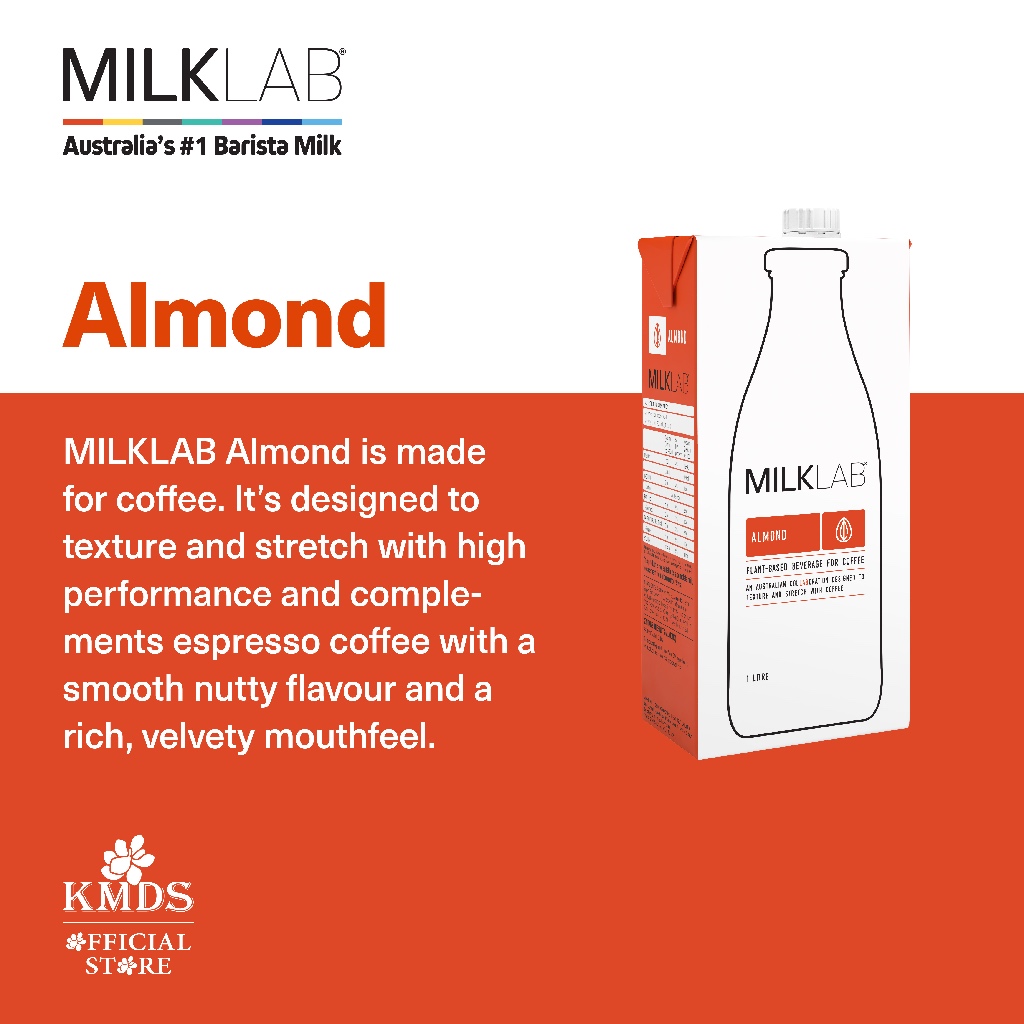 MILKLAB Almond milk. Weve spent countless hours blending and testing the perfect almond milk for coffee. Our unique recipe brings you not only a milk that complements the intensity of espresso but also textures and stretches with any coffee type.