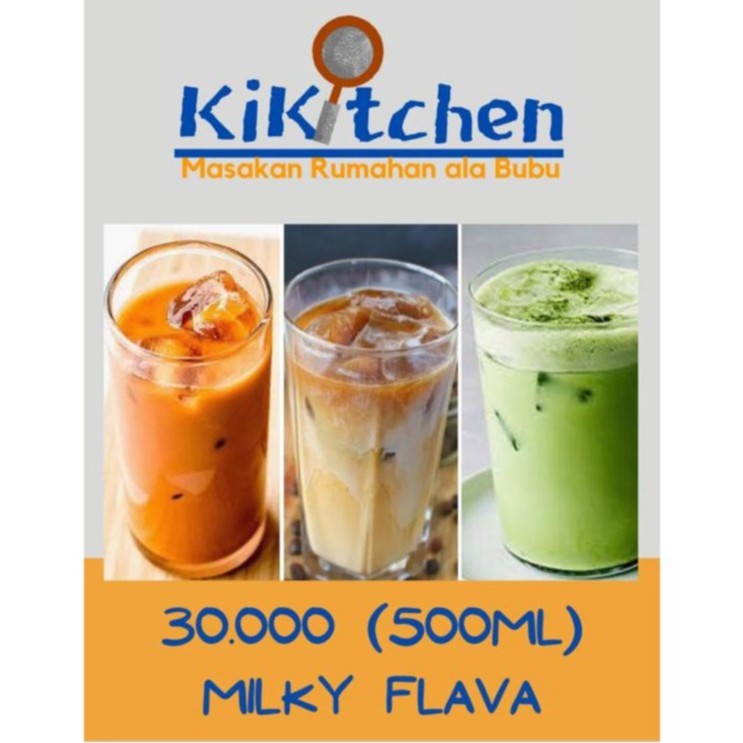 Minuman segar ala #KIKITCHENBYBUBU dengan kandungan susu murni dan aneka varian rasa. #MILKYFLAVA tersedia dengan rasa THAI TEA, COFFEE, AREN, dan MATCHA. Minuman segar yang baru akan kami buat setelah ada pesanan. Cocok untuk dinikmati bersama keluarga, teman, pasangan, acara ulang tahun, acara kantor, dan acara lainnya.