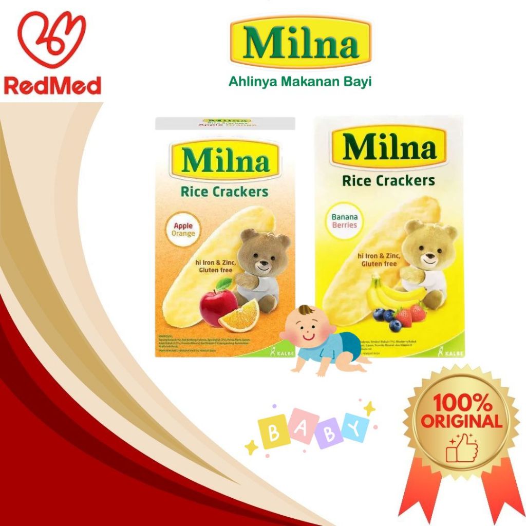 Milna Rice Crackers merupakan camilan yang terbuat dari beras sebagai sumber energi, serat, vitamin dan mineral dengan bentuk yang mudah digenggam dan lumer sehingga tidak membuat bayi tersedak.