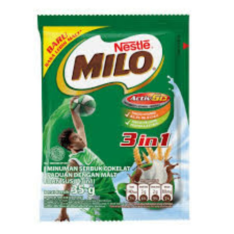 Milo renteng 3 in 1 dengan tambahan susu di dalamnya.