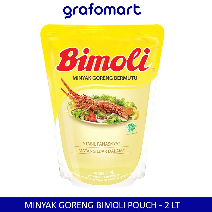 Bimoli Minyak Goreng Pouch 2 L adalah minyak goreng yang terbuat dari biji kelapa sawit pilihan yang diproses dengan tahap Pemurnian Multi Proses (PMP) yang memiliki enam tahapan pemrosesan, mampu mempertahankan zat-zat yang bermanfaat bagi kesehatan sehingga menghasilkan minyak goreng berkualitas tinggi. Mengandung Omega 9 yang memiliki asam lemak tak jenuh tunggal atau Mono Unsaturated Fatty Acid (MUFA) yang menurut para ahli internasional berkhasiat menurunkan kolesterol LDL dan menaikkan kolesterol HDL. Minyak goreng Bimoli juga merupakan sumber beta-karoten (pro-vitamin A) tinggi dan vitamin E, serta diformulasi bebas kolesterol sehingga aman untuk penderita kolesterol dan jantung.