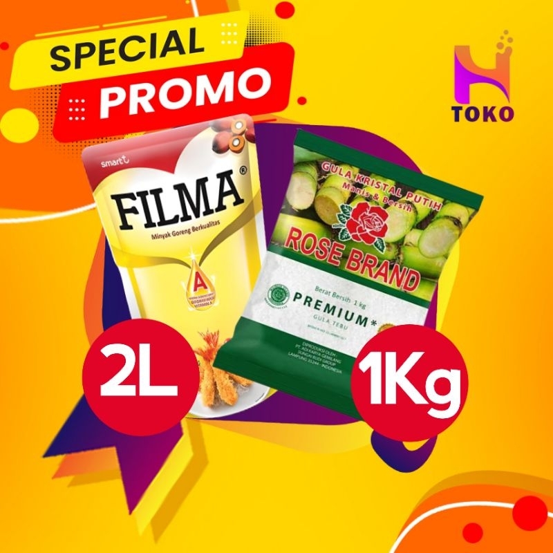 MINYAK GORENG FILMA 2L + GULA ROSE BRAND 1KG