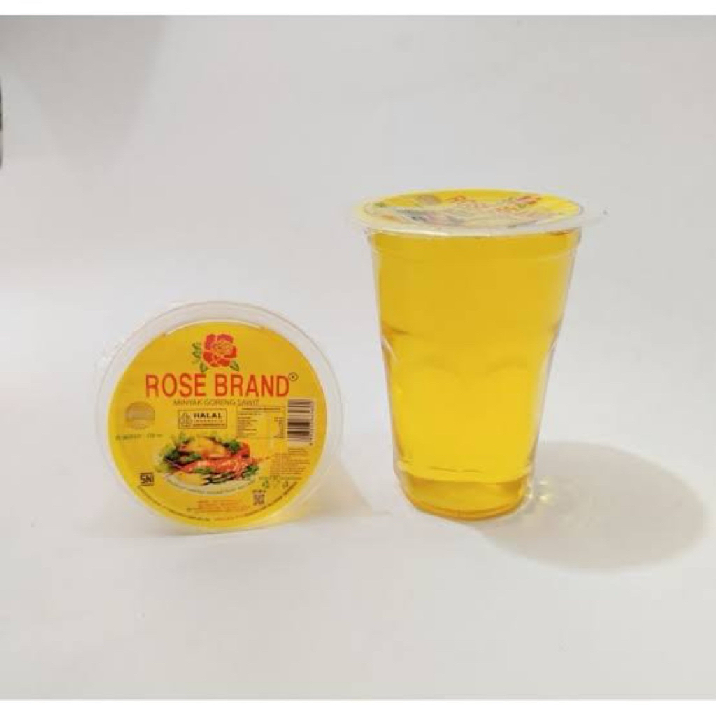 Minyak Goreng Rose Brand dalam kemasan gelas praktis! Cocok untuk keperluan dapur sehari-hari maupun usaha kuliner.
