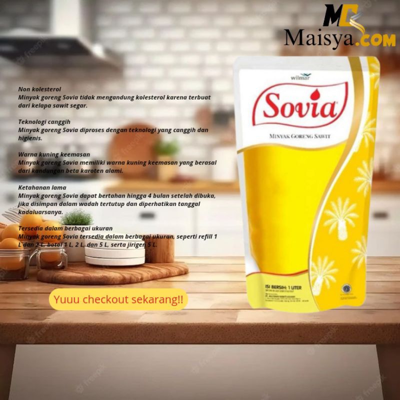 Minyak goreng Sovia 1 liter adalah produk minyak goreng dengan ukuran 1 liter yang memiliki kualitas terpercaya dan terjamin. Dilengkapi juga dengan komposisi kelapa sawit alami dan telah dipilih secara teliti oleh para petani kelapa sawit.