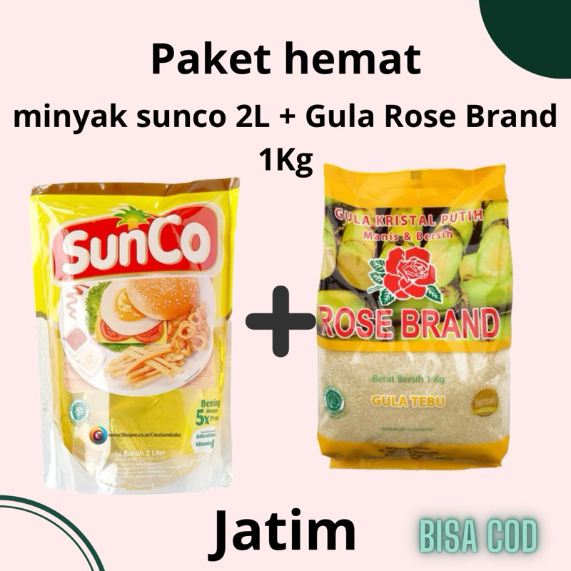 MINYAK GORENG SUNCO 2LTR + GULA ROSE BRAND 1KG
