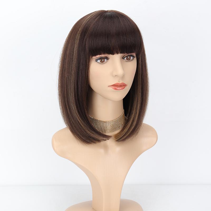 MISS WIG Женский короткий прямой коричневый парик Боб с челкой Синтетическое волокно длиной до плеч Натуральный коричневый парик для повседневного ношения